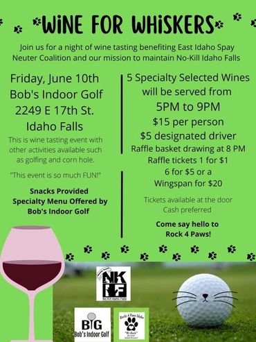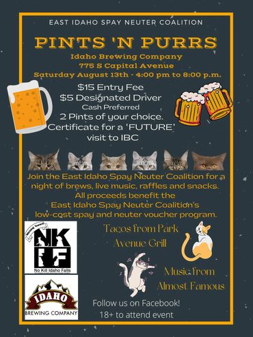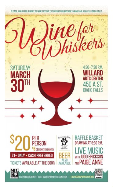 The entry fee is $25 at the door ($5 for designated drivers) and includes wine tasting, HUGE raffle baskets, beer tasting options, and a lovely evening for the community’s finest animal lovers. Paige Anne (an Idaho Falls Top 20 contestant on American Idol) and friends will be performing at the event. Must be 21+ to attend. Cash preferred event. All monies raised will benefit the East Idaho Spay & Neuter Coalition (EISNC).